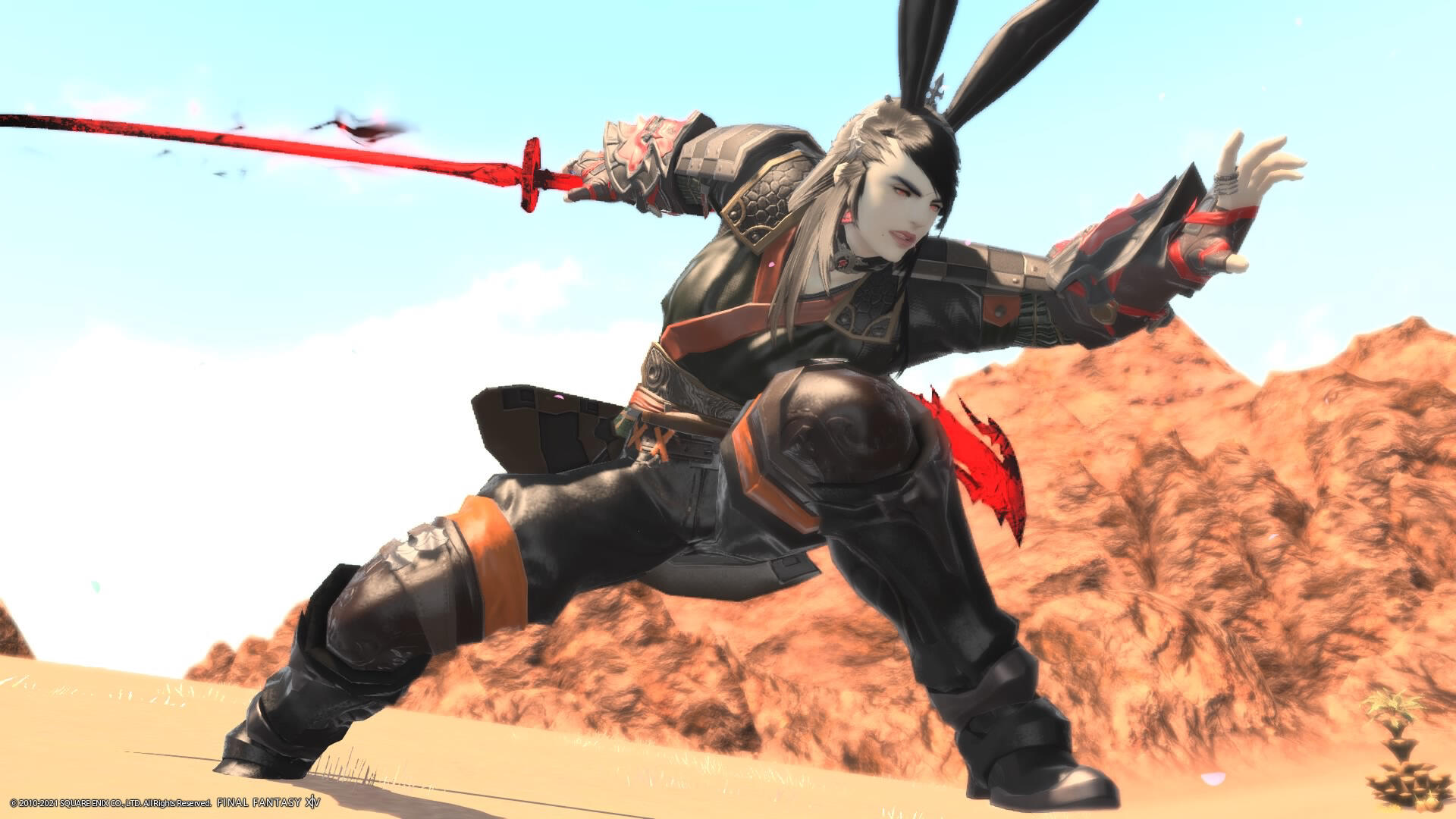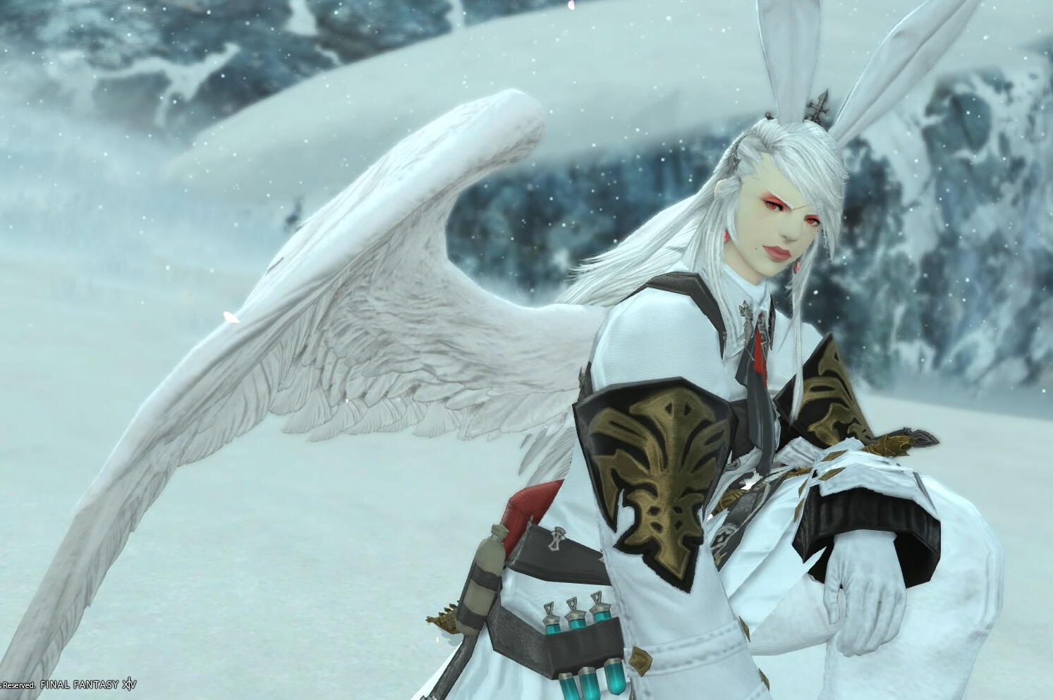 Since that day, the fell Roegadyn now known as Devil Panzerfaust wanders the land of Eorzea like a lost soul ever in search of conflict. Objectives of fights, skills, titles, qualifications of those who cross her footsteps mean about as much to her as their possible rank. . .. . .absolutely nothing.Losing all faith in the fangs of Dragoon, stating that it now felt nothing more than a ‘ranged melee’ occupation, Devil has taken up the sword of the Samurai. More importantly, regardless of the job, she has at long last begun to solidify her own martial expression.Ninth Panzersword: Hateful Crusade is said to be a continuation of the eighth hit of Asuran Fists, the signature killing skill that was used to send so many to a miserable and early grave during the days of the 75th conflicts. It is a style that commands neither a practical, cautious user or a brave one. . .but a reckless fool simply intent upon breaking through.Of all the stories left to tell of the killing grounds, perhaps the only one that may hold any significance is the rather obscure recounting of an event one day upon the Rock of Seals.As a hungering Devil ascended the windswept plains near the coast, her eyes fell ruefully upon a single Lalafell. Surrounded by enemy summoners, the tiny, rather plump lala, a whitemage, held his ground . . .attacking back, not with magic. . .but his lala staff. Enraged at the sheer stupidity of the tiny potato, Devil stood motionless, wishing nothing more than to see his pint sized life righteously snuffed out.The lala won.Angered beyond words, Devil marched up to the now calm Lalafell, looking down upon him with a years worth of distain. “You FOOL! That was one of the stupidest * things I’ve seen in my life! A* COMPLETE disregard for any rational, orderly fighting sense!” Responding not at all with her tone of contempt, the tiny lala raised a brow. “. . .was it, now?” Nearly tempted to smack the blatantly carefree lala where he stood, Devil walked right up to him. Lowering upon her haunch, she glared in his direction. “What is your name?” With an old kindly smile that assumes nothing but the warmth of the afternoon sun, the tiny lala looked up at her. “Name? Oh ho. . .my name is of no import whatsoever. However,” he said, gesturing with a teaspoon’s worth of mischief, “I am occasionally prone to raise a bit of a ruckus.” Taking a step forward, gazing down the field in the direction of the next conflict with the strange presence of one who knows a thing or two about conflict. . .a general. . .the lala turned back to her. “. . .you coming?”Whatever tales remain of the Devil of Eorzean Rain who, to this day still struggles to maintain control against the demon seeking to reclaim all that is his. . .are unimportant ones. Slithers of obscurity best left filed away in the halls of a library long forgotten. There remains but one word regarding the individual who I have already stated far too much about. That if you should ever find yourself traversing a lonely road, where the dust rises with a tireless refusal to settle. . .If you should come upon a female Roegadyn with mane black as night or white as drifting snow, with ears belonging to an alert bunny. . .. . .walk on by.. . .continue on your way.If, for whatever reason, you feel a need to engage her, do it with the safety of a group. Do it with a caring and supportive healer who will assuredly assist you in standing on your feet. Do it with friends, with allies. . .. . .do it with at LEAST O N E O T H E R person. . .For if you attempt to engage her without ANY BACKUP WHATSOEVER. . . you may find. . .that the day is much later than you initially suspected. . .